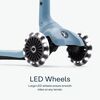 Den justerbara fotplattan ger stabilitet och en säker passform, medan LED-hjulen förbättrar sikten, särskilt i svagt ljus, vilket gör den till ett säkert alternativ för både småbarn och äldre barn.