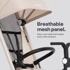 Skydd i alla väder: En utfällbar sufflett i tre steg skyddar barnet, medan den andningsbara nätpanelen i sätet säkerställer ett behagligt luftflöde även under varma dagar.