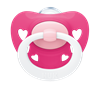NUK Signature är ortodontiskt utformad för att passa det lilla barnets anatomi. Ovansidan av sugdelen lägger sig mjukt mot gommen, och undersidan lämnar plats för tungans naturliga sugrörelser. Eftersom sugdelen är smal och platt blir det nästan ingen belastning på tänder, käke eller gom.